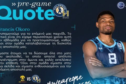 Στην έδρα της ΑΕΚ δοκιμάζεται ο Κολοσσός (9/11, 17:00), με τον Φράνσις Οκόρο, με δηλώσεις του στην επίσημη ιστοσελίδα της ομάδας της Ρόδου, να μιλά για το επερχόμενο ματς των Άνω Λιοσίων: