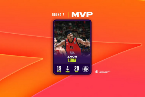 Στα χέρια του Ζακ ΛεΝτέι κατέληξε το βραβείο του πολυτιμότερου παίκτη της 7ης αγωνιστικής της Euroleague.