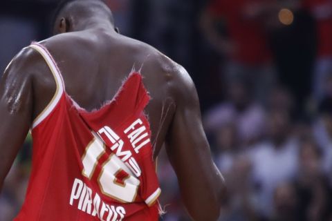 Απίστευτο περιστατικό λίγο πριν το φινάλε του αγώνα του Ολυμπιακού με την Μπαρτσελόνα, με πρωταγωνιστές τους Φαλ και Ερνανγκόμεθ και… θύμα την φανέλα του Γάλλου σέντερ.
