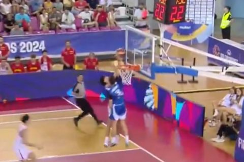 Φοβερή φάση στο πρώτο δεκάλεπτο του ημιτελικού μεταξύ της Ελλάδας και της Ισπανίας για το Eurobasket U16, με τον Ασημένιο να κόβει στα "ίσια" τον αντίπαλό του με τρομερό μπλοκ, βγάζοντας μια σπουδαία άμυνα, για να ακολουθήσει το τρίποντο του Χαρτόνα από τη γωνία, ολοκληρώνοντας μια εξαιρετική φάση και στις δύο πλευρές του παρκέ, μοιράζοντας ενθουσιασμό τις εξέδρες του κλειστού της Νέας Αλικαρνασσού.