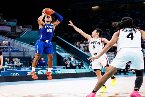 Η Γαλλία δυσκολεύτηκε απέναντι στην Ιαπωνία και ένα τρίποντο φάουλ του Στραζέλ στα τελευταία δέκα δευτερόλεπτα έστειλε το ματς στο έξτρα πεντάλεπτο με τους μπλε να το καθαρίζουν και να κάνουν το 2/2 στην διοργάνωση.