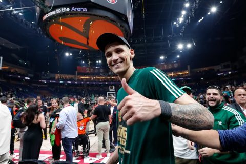 Ο Ντίνος Μήτογλου δεν μπορούσε να κρύψει την χαρά του για την στέψη του Παναθηναϊκού ως πρωταθλητή Ευρώπης.