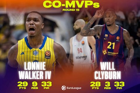 Euroleague: Σε Λόνι Γουόκερ και Γουίλ Κλάιμπερν το βραβείο του MVP της 15ης αγωνιστικής