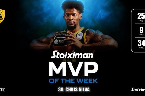 Ο Κρις Σίλβα συνεχίζει να εντυπωσιάζει με τα χρώματα της ΑΕΚ, με τον Γκαμπονέζο σέντερ να κερδίζει μία θέση στην κορυφαία πεντάδα της εβδομάδας, στο Basketball Champions League.