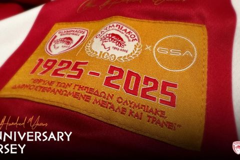 Την επετειακή του φανέλα για τα γενέθλια των 100 ετών από την ίδρυση του, παρουσίασε ο Ολυμπιακός.