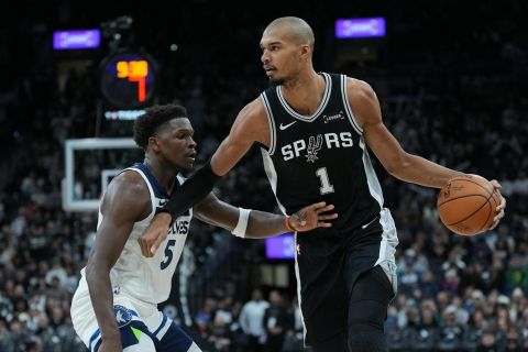 Εκπληκτικό παιχνίδι είχαμε στο Σαν Αντόνιο, με τους Σπερς να επικρατούν των Τίμπεργουλβς με 126-123 και τον Βίκτορ Γουεμπανιαμά να… χαλάει την βραδιά καριέρας του Άντονι Έντουαρντς.