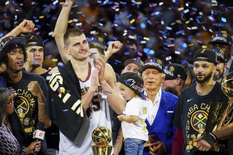Οι Νάγκετς επικράτησαν των Χιτ στο Game 5 με σκορ 94-89 και στέφθηκαν πρωταθλητές για πρώτη φορά στην ιστορία τους, με τους αθλητές και το τεχνικό επιτελείο να ζουν μεγάλες στιγμές κατά την απονομή του τροπαίου.