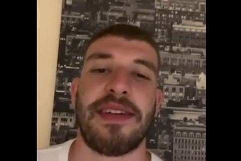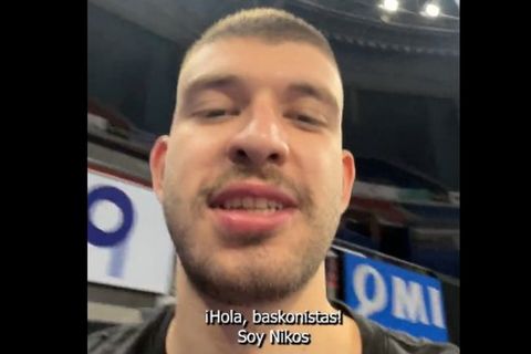 "Γειά σας Μπασκονίστας. Είμαι ο Νίκος. Είμαι εδώ στην Buesa Arena. Είμαι έτοιμος να ξεκινήσω με την ομάδα και ανυπομονώ να σας δω όλους στο γήπεδο".
