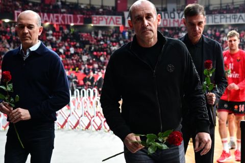 Ολυμπιακός: Κατάθεση λουλουδιών από Αγγελόπουλους και παίκτες στη μνήμη των θυμάτων της 7 (pics)