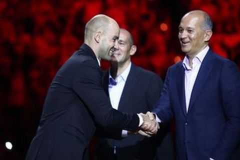 Οι πρόεδροι της ΚΑΕ Ολυμπιακός Παναγιώτης και Γιώργος Αγγελόπουλος μίλησαν για τον Βασίλη Σπανούλη στο πλαίσιο της εκδήλωσης που γίνεται προς τιμήν του.