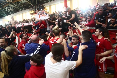 Ο Ολυμπιακός, μετά το 3-1 στους τελικούς της Α1 Γυναικών επί του Αθηναϊκού, πανηγυρίζει την κατάκτηση του τέταρτου συνεχόμενου πρωταθλήματος και ένατου, συνολικά, στην ιστορία του.