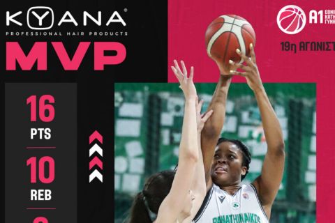 Η Τζίλιαν Αλέιν του Παναθηναϊκού αναδείχθηκε ΚΥΑΝΑ MVP της 19ης Αγωνιστικής στην Α1 Γυναικών, μια διάκριση που κατακτά για τρίτη φορά φέτος.