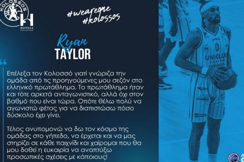 Ο Ράιαν Τέιλορ θα φορά την επερχόμενη σεζόν την φανέλα του Κολοσσού, με τον ίδιο, με δηλώσεις του, να αποκαλύπτει τον λόγο που επέλεξε να συνεχίσει την καριέρα του στους Ροδίτες.