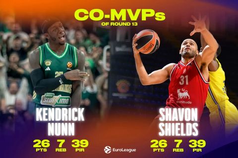 Στα… δύο χώρισε η Ευρωλίγκα τον τίτλο του κορυφαίου παίκτη της 13ης… στροφής.