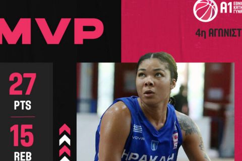 Η Στάσα Κάρεϊ αναδείχθηκε πολυτιμότερη παίκτρια της 4ης αγωνιστικής της Α1 γυναικών, με την Αμερικανίδα να οδηγεί τον Ηρακλή σε μεγάλη εκτός έδρας νίκη κόντρα στην Ελευθερία Μοσχάτου.