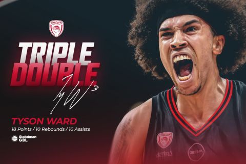 Ο Τάισον Γουόρντ έγραψε ιστορία στο κλειστό της Ρόδου, με το triple double που σημείωσε, στην νίκη του Ολυμπιακού επί του Κολοσσού.