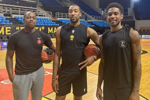 Αλληλεγγύη δείχνει η ΑΕΚ στους Αμερικανούς αθλητές της Χάποελ Τελ Αβίβ που έφυγαν από την εμπόλεμη ζώνη του Ισραήλ, με τον Μακρέι να υποδέχεται στο κλειστό των Άνω Λιοσίων τους Τζέικοβαν Μπράουν και Εξέβιερ Μάνφορντ.