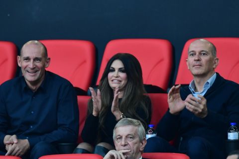Η νέα πρέσβειρα των Ηνωμένων Πολιτειών της Αμερικ΄ης στην Ελλάδα, Κίμπερλι Γκιλφόιλ, βρίσκεται στο Στάδιο Ειρήνης και Φιλίας μαζί με τους ισχυρούς άνδρες της ΚΑΕ Ολυμπιακός, παρακολουθώντας την αναμέτρηση των Πειραιωτών απέναντι στη Παρί.