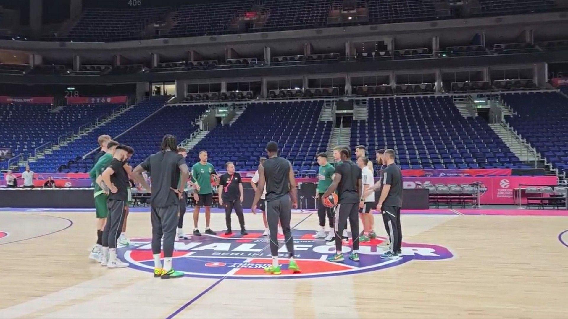 Όλα έτοιμα είναι στον Ολυμπιακό για τον ημιτελικό του Final 4 της Euroleague με τη Ρεάλ Μαδρίτης, με τους Γιώργο Αγγελόπουλο και Νίκο Λεπενιώτη να παρακολουθούν την τελευταία προπόνηση των ερυθρόλευκων.