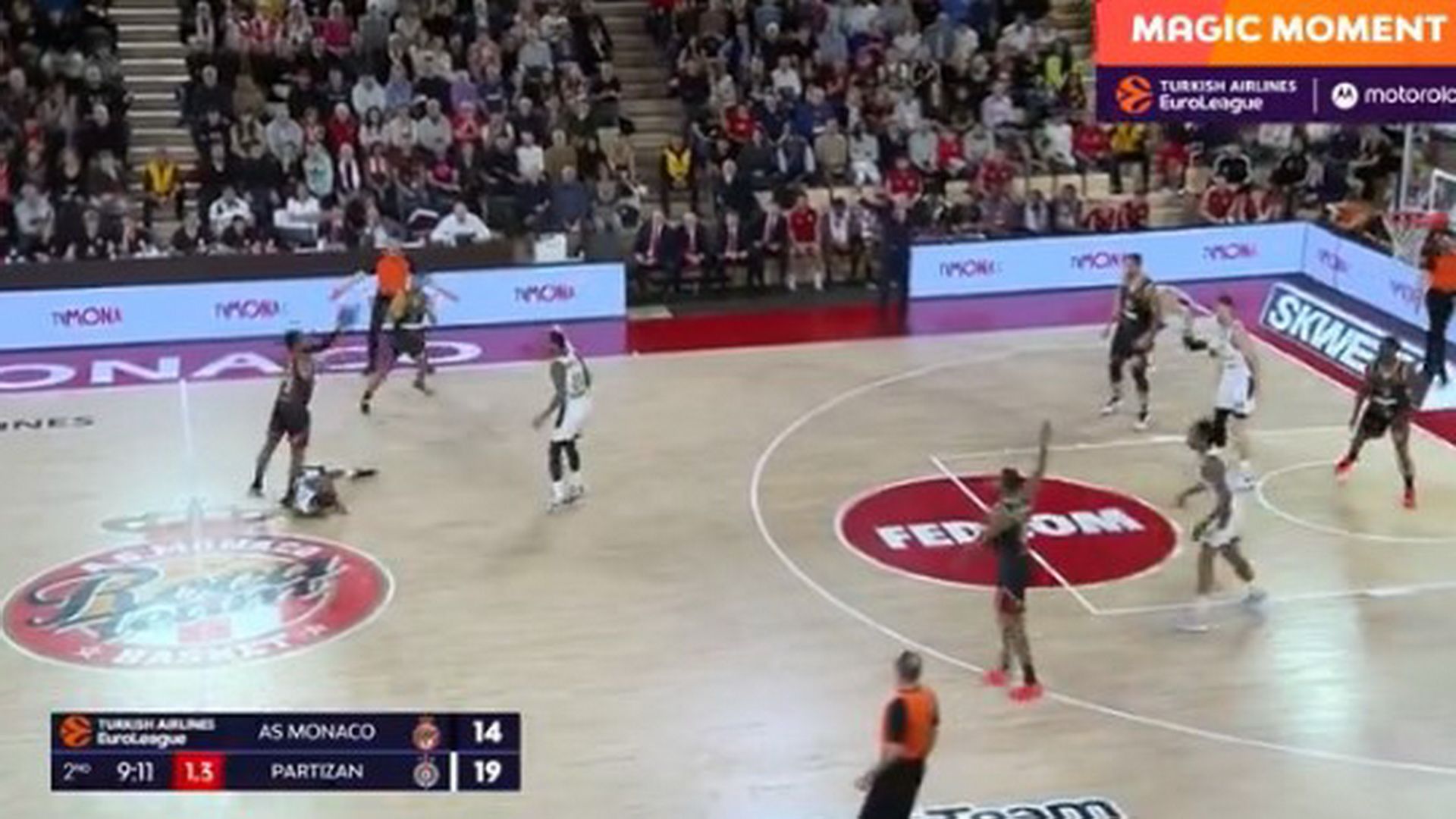 Απίστευτη φάση στο ξεκίνημα της δεύτερης περιόδου της αναμέτρησης της Μονακό με την Παρτιζάν, με πρωταγωνιστή τον Τζόρνταν Λόιντ.