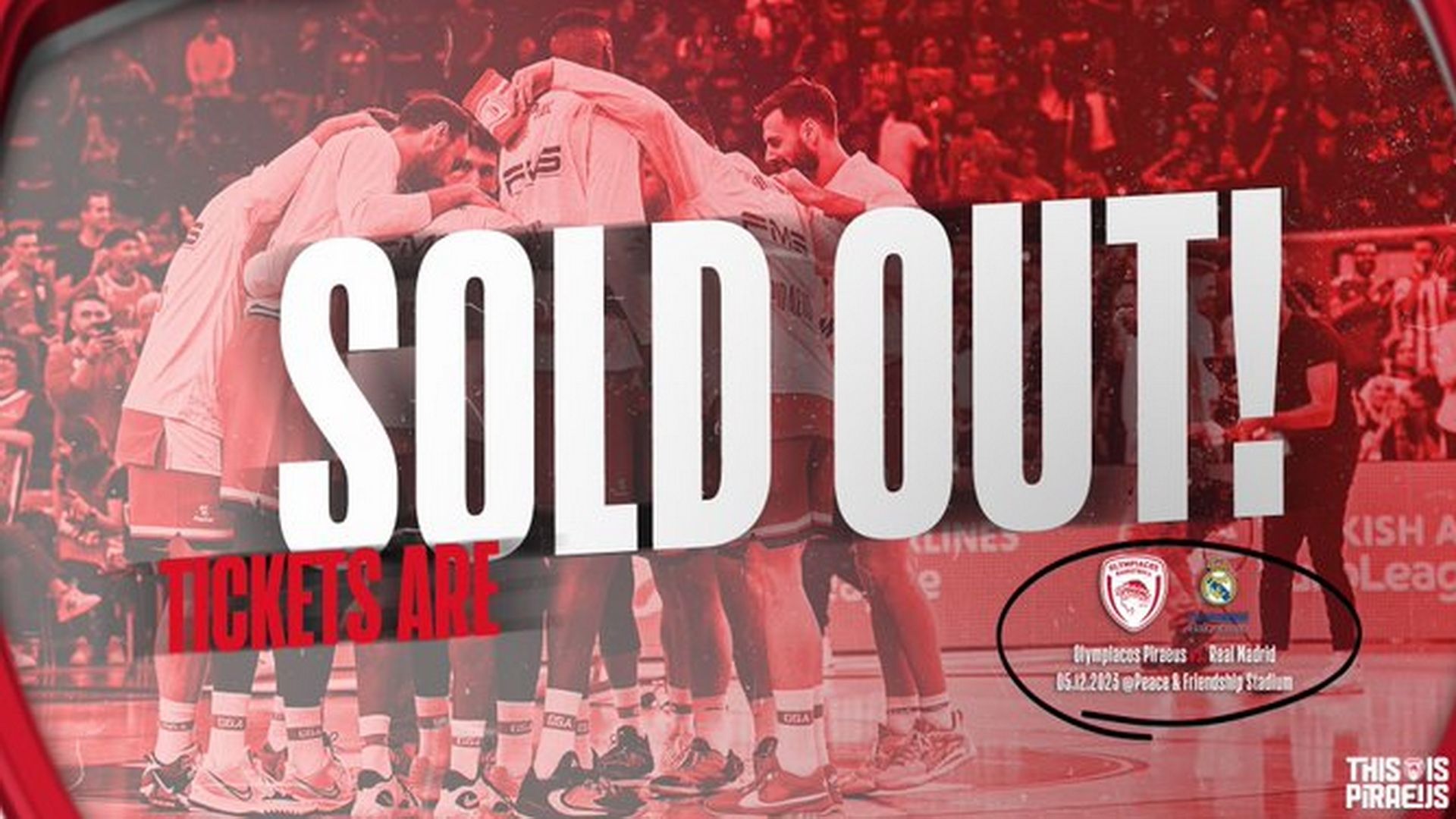 Ακόμα ένα sold out ανακοίνωσε η ΚΑΕ Ολυμπιακός οκτώ μέρες πριν το παιχνίδι με την Ρεάλ Μαδρίτης ( 5/12 , 21:15).