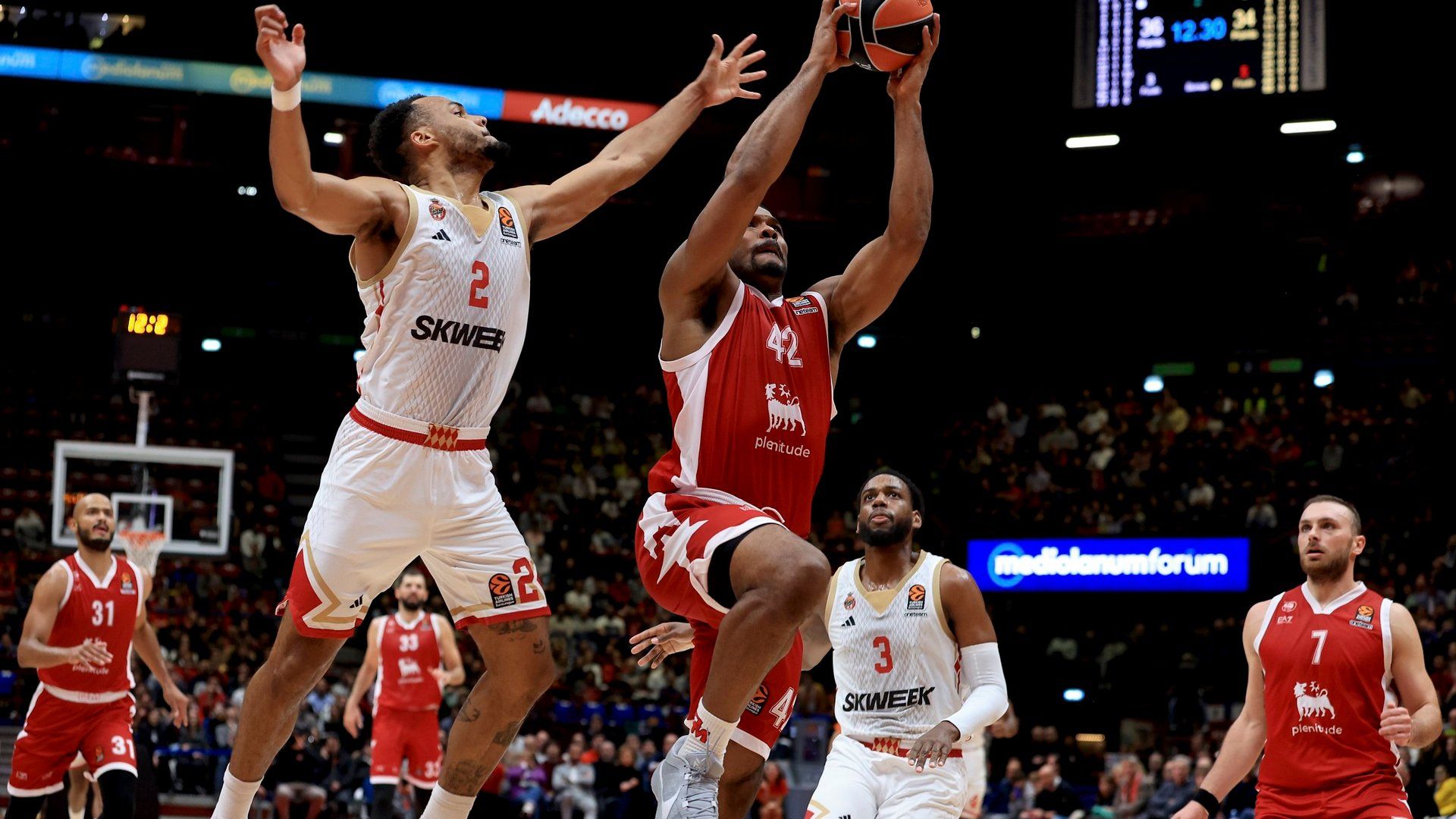 Η Μονακό πέρασε από το Μιλάνο με ηγέτη Τζέιμς ( 21 π. - 5 ρ. - 3α.) και έφτασε στο 4-2 στην διοργάνωση, ενώ για την Αρμάνι αυτή ήταν η 5η ήττα σε 6 αναμετρήσεις.
