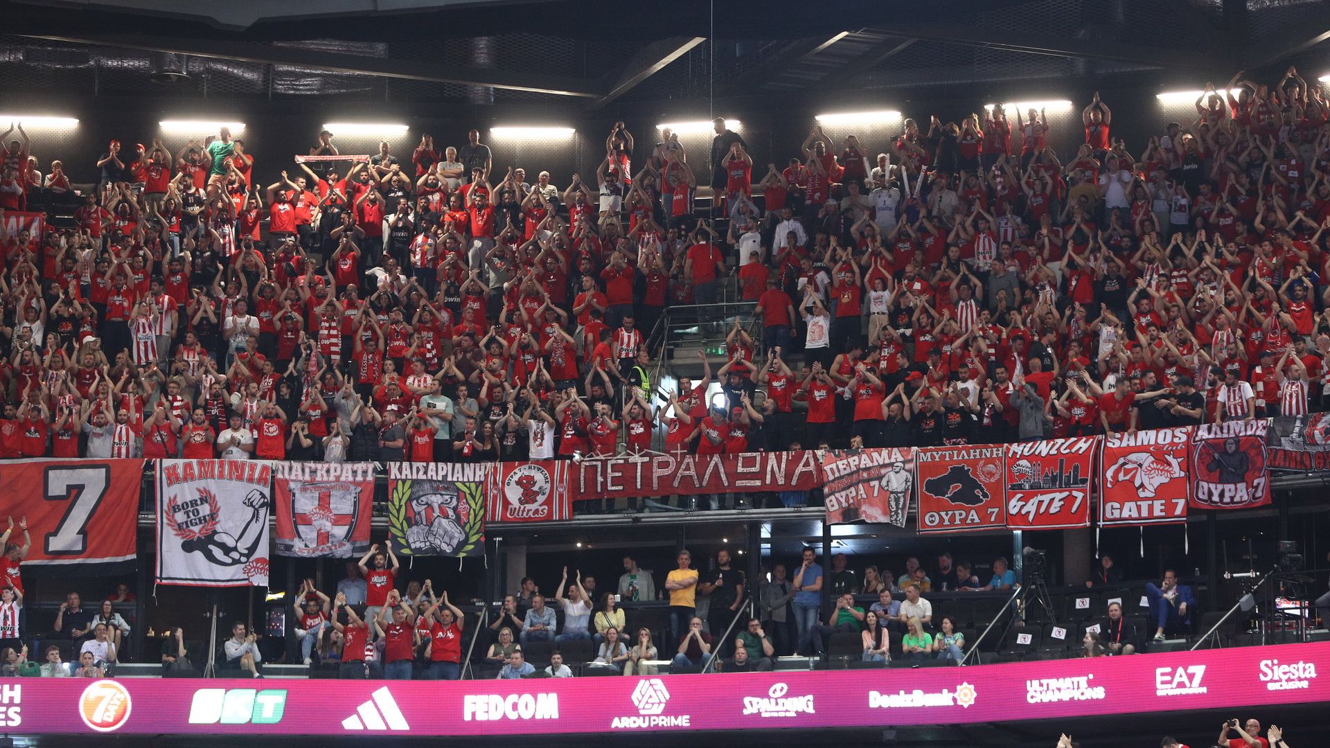 Η εικόνα των οπαδών του Ολυμπιακού στην «Zalgirio Arena» είναι συγκλονιστική, καθώς 8.000 οπαδοί των «ερυθρόλευκων» έχουν μετατρέψει σε… Στάδιο Ειρήνης και Φιλίας το γήπεδο στο οποίο θα διεξαχθεί ο μεγάλος τελικός της Euroleague με την Ρεάλ Μαδρίτης.