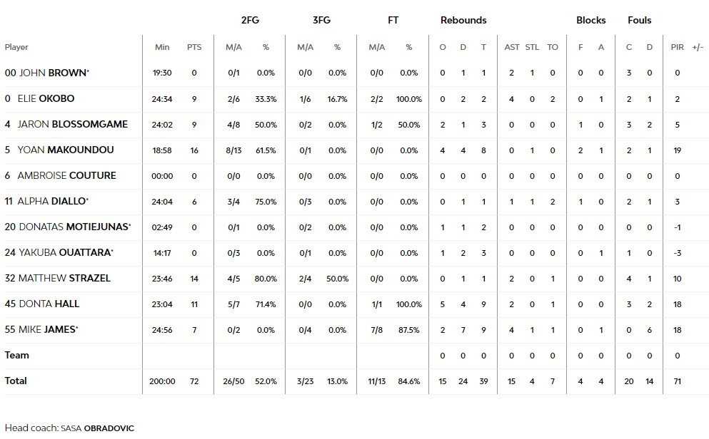 Από την Εφές ο Πλαίς ξεχώρισε με 21 πόντους, ενώ από τη Μονακό πρώτος σκόρερ αναδείχθηκε ο Μακουντού με 16.