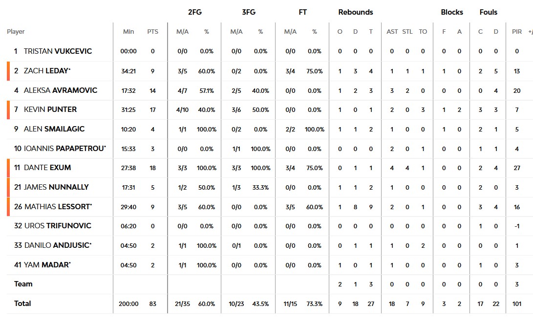 Ξεχώρισαν: Πάντερ, Αβράβοβιτς, Έξουμ, ΛεΝτέι για την Παρτιζάν, Γκριγκόνις, Πονίτκα, Μπέικον, Γκουντάιτις Παπαγιάννης από τον Παναθηναϊκό