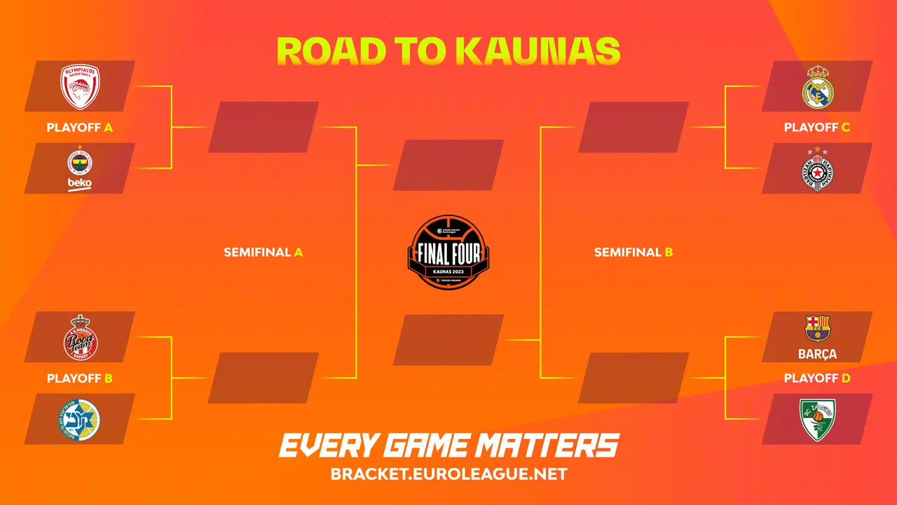 Να σημειωθεί πως αν ο Ολυμπιακός καταφέρει να πάρει το εισιτήριο για το Final Four του Κάουνας, στον ημιτελικό θα αντιμετωπίσει τον νικητή του ζευγαριού Μονακό – Μακάμπι, με τους νικητές των άλλων δύο ζευγαριών να βγάζουν τον έτερο ημιτελικό.