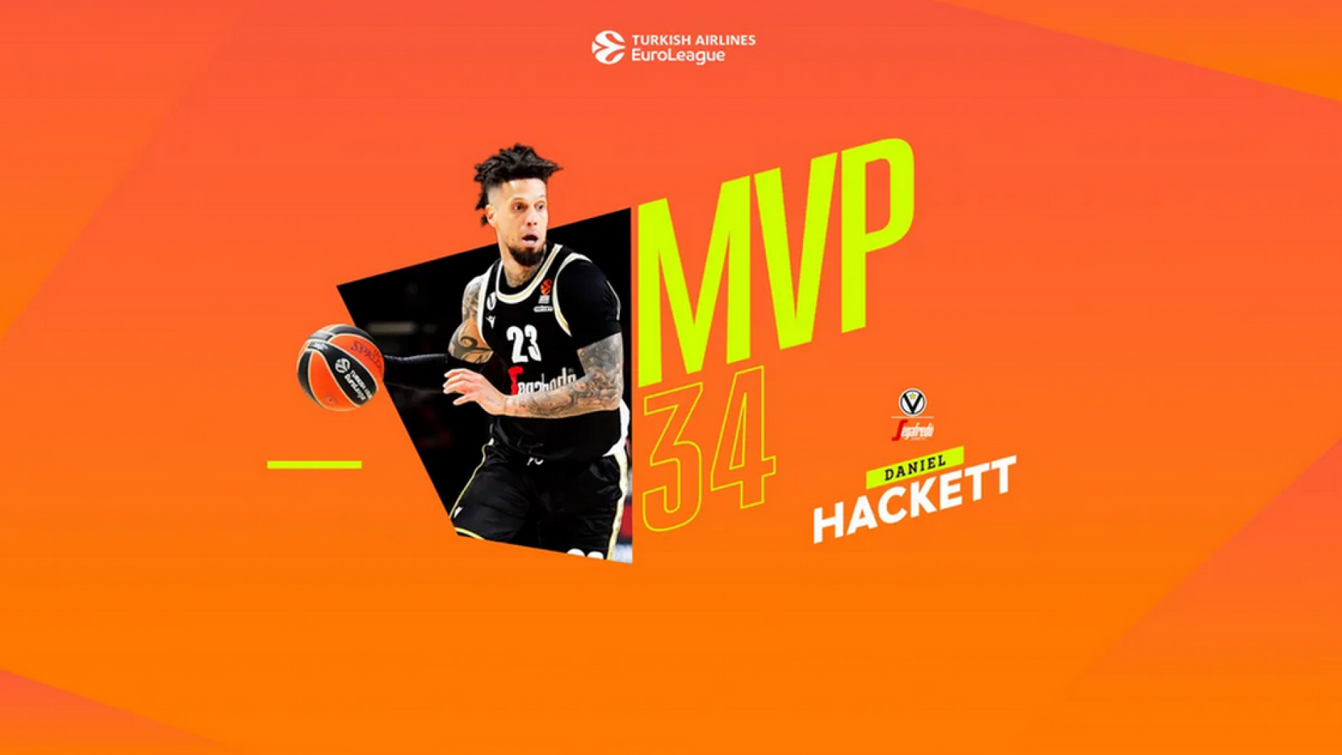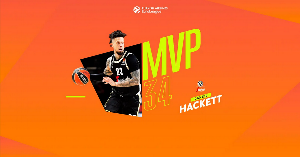 Στα χέρια του Ντάνιελ Χάκετ κατέληξε το βραβείο του MVP της 34ης αγωνιστικής της Euroleague, της τελευταίας της regular season.