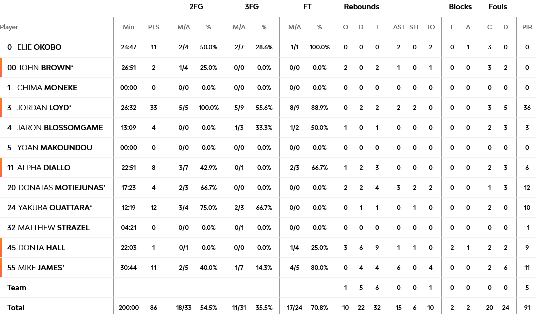 Εκκωφαντική εμφάνιση από τον Λόιντ με 33 πόντους, με τον Ουαταρά να ακολουθεί με 12 πόντους και τους Οκόμπο και Τζέιμς με 11 έκαστος.