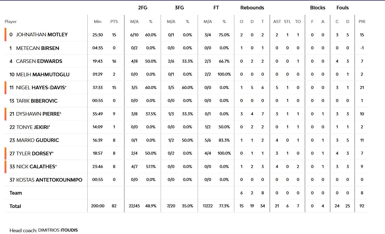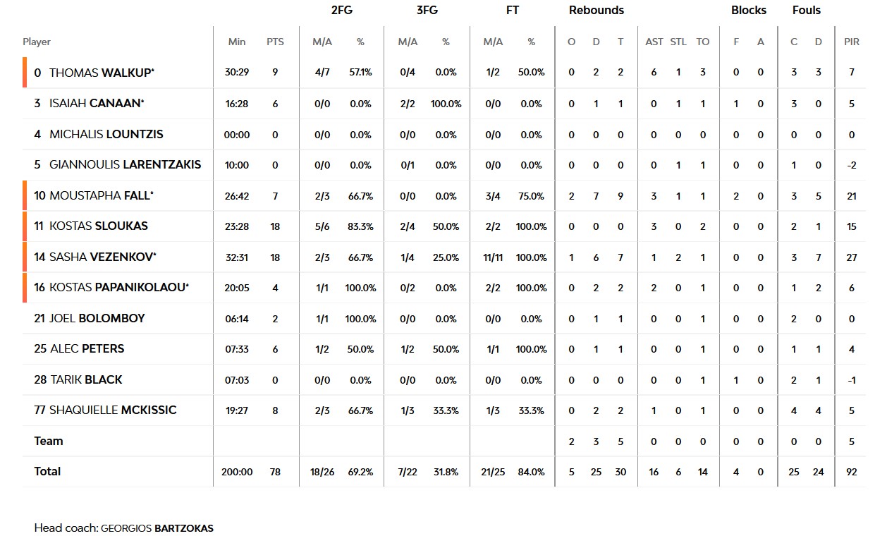 Ξεχώρισαν: Σλούκας, Φαλ, Γουόκαπ, Κάνααν από τον Ολυμπιακό, Κάρσον, Καλάθης, Μότλεϊ, Πιερ από την Φενέρμπαχτσε