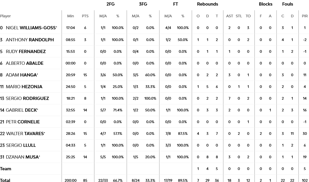 Ταβάρες και Χάνγκα, με 15 πόντους έκαστος, ηγήθηκαν του σκοραρίσματος της Ρεάλ, με τους Ντεκ και Μούσα να ακολουθούν με 14 ο καθένας.