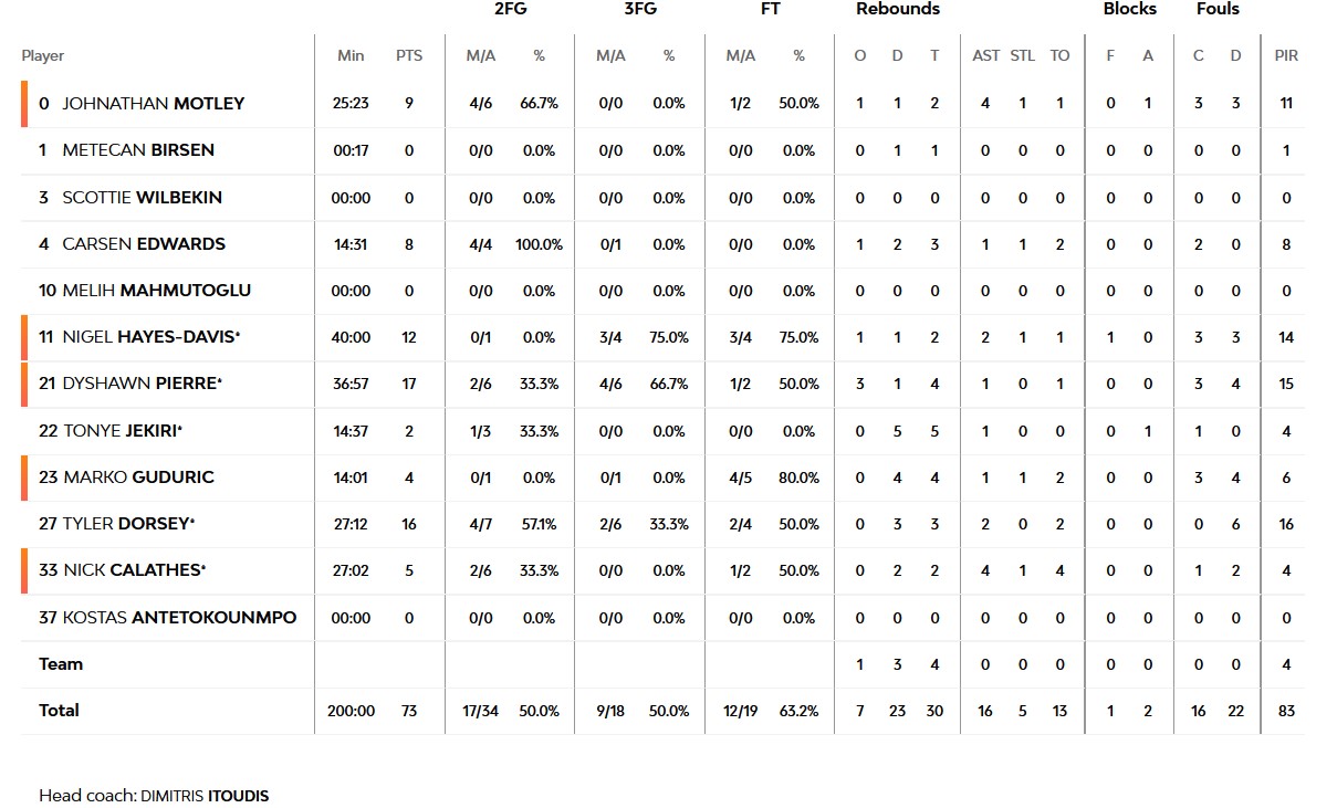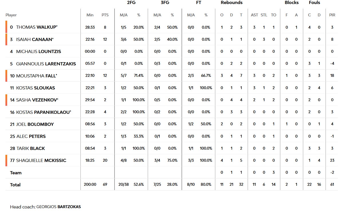 Η μεγαλύτερη διαφορά: +7 (70-63, 38'15'') για την Φενέρμπαχτσε, +5 (0-5, 1’30’’) για τον Ολυμπιακό