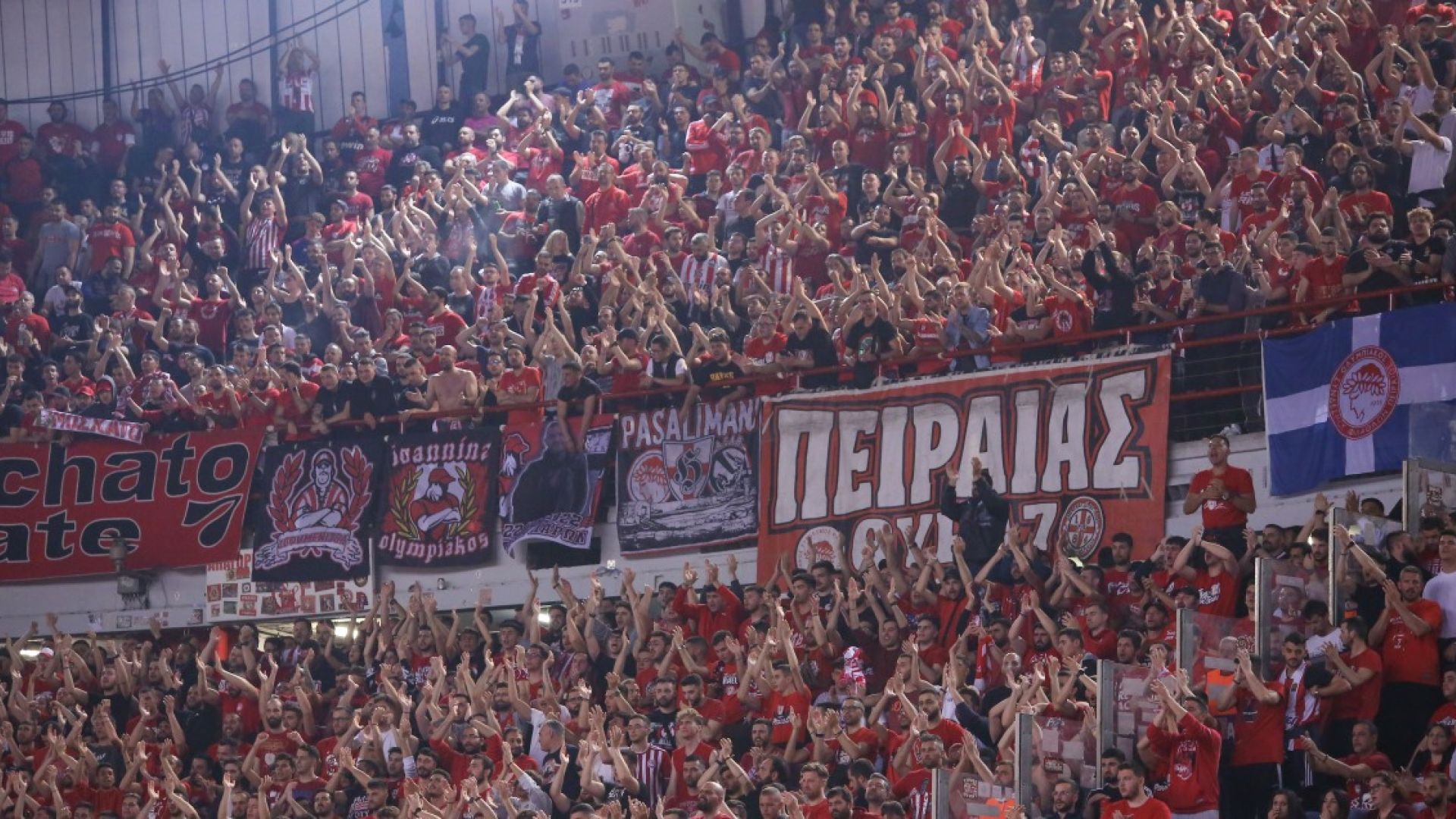 Αρκετοί «ερυθρόλευκοι» βρέθηκαν έξω από την αίθουσα της συνέντευξης Τύπου, με τα συνθήματα και τα τραγούδια τους να ακούγονται ξεκάθαρα κατά την διάρκεια του live της Euroleague.