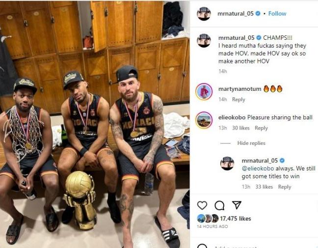 Ο Αμερικανός σούπερ σταρ της Μονακό ανέβασε μία φωτογραφία στο Instagram μαζί με τον Έλι Οκόμπο και τον Τζόρνταν Λόιντ με τον Γάλλο να απαντάει: "Χαρά μου να μοιράζομαι την μπάλα" και τον Τζέιμς να λέει με την σειρά του:"Πάντα. Έχουμε ακόμα μερικούς τίτλους να κατακτήσουμε".