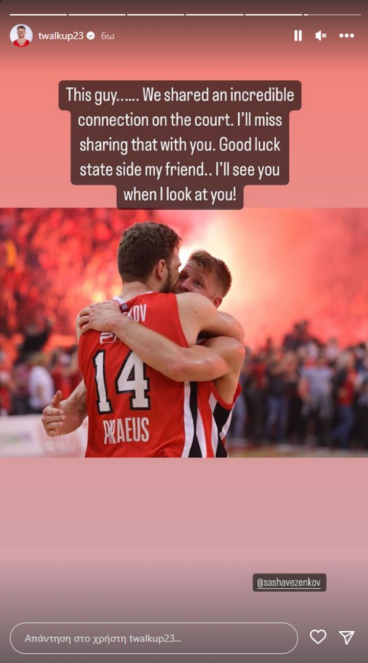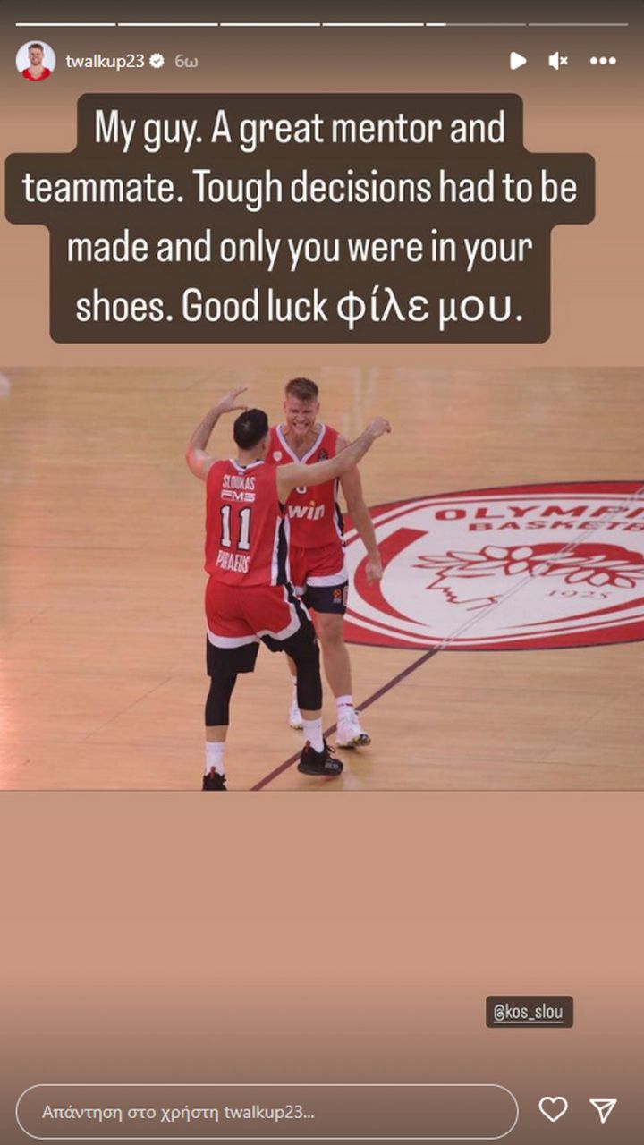 Το δικό του συγκινητικό «αντίο» στους Κώστα Σλούκα και Σάσα Βεζένκοβ, που αποφάσισαν να συνεχίσουν την καριέρα τους μακριά από τον Ολυμπιακό, έστειλε μέσω των social media ο Τόμας Γουόκαπ.