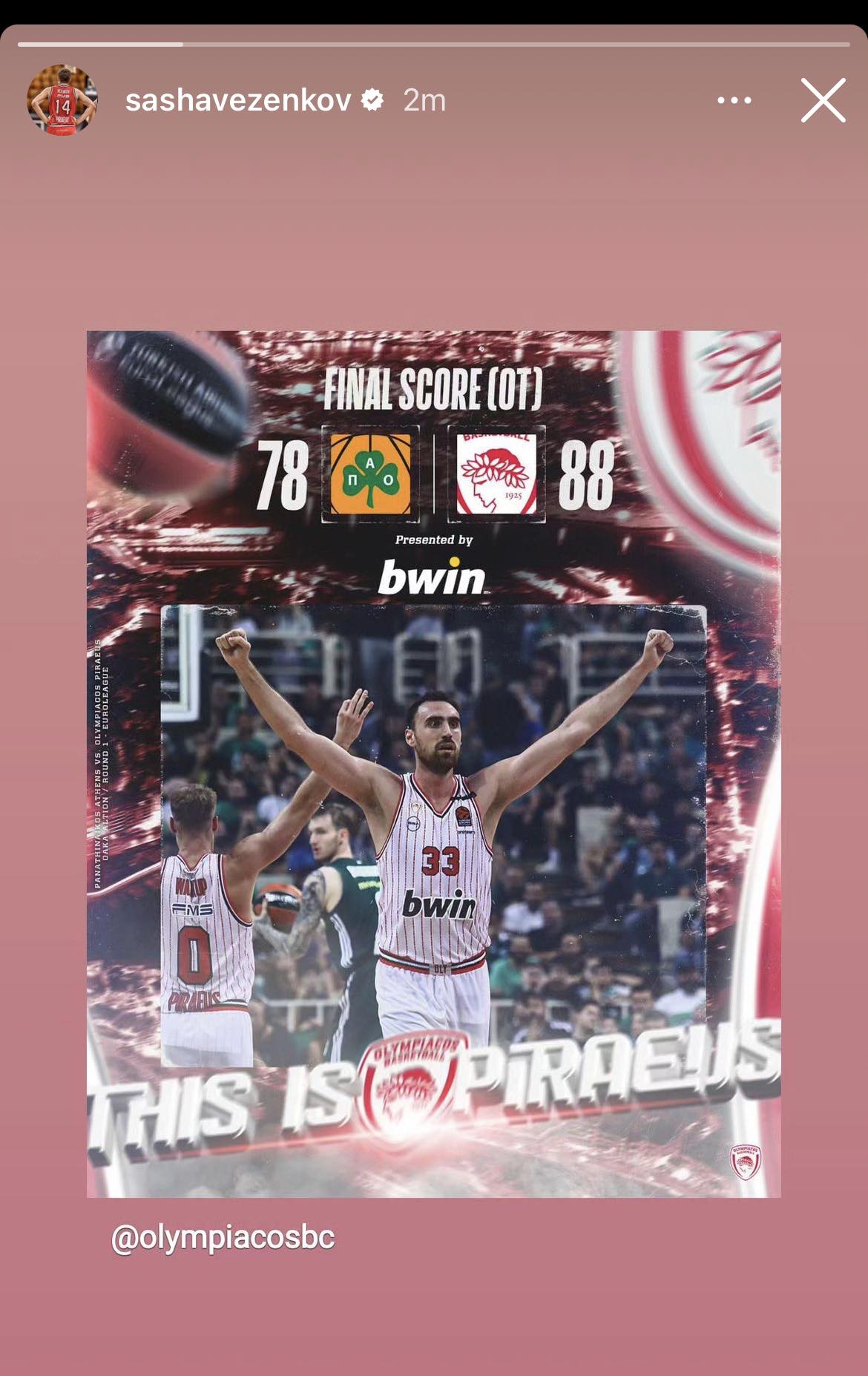Ο Σάσα Βεζένκοβ συνεχίζει την καριέρα του στο ΝΒΑ, όμως δεν ξεχνά σε καμία περίπτωση τα χρόνια που πέρασε στους «ερυθρόλευκους», πανηγυρίζοντας και αυτός το μεγάλο «διπλό» επί του Παναθηναϊκού.