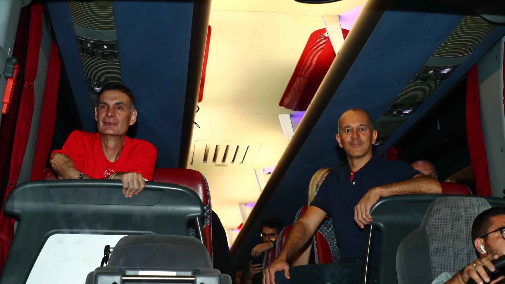 Ανάμεσα τους, οι Παναγιώτης και Γι΄ώργος Αγγελοπουλος, με τους διοικητικούς ηγέτες του Ολυμπιακού να γίνονται... ένα με τον κόσμο της ομάδας