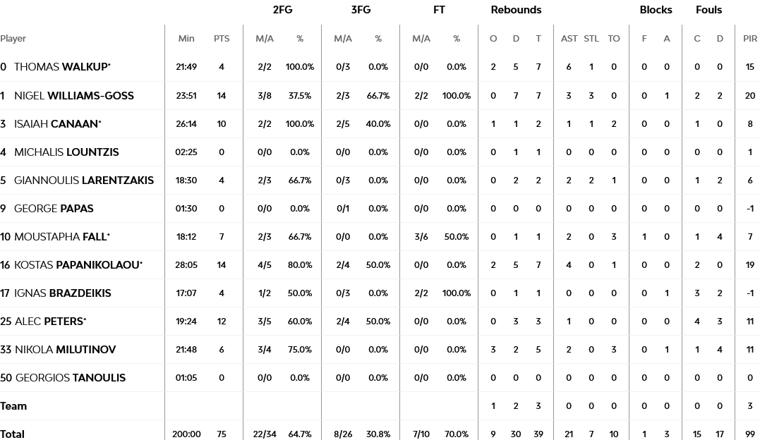Ξεχώρισαν: 12 πόντους σημείωσε ο Πίτερς και 10 ο Κάνααν ενώ για την Εφές, ο Μπράιαντ είχε 10 πόντους.