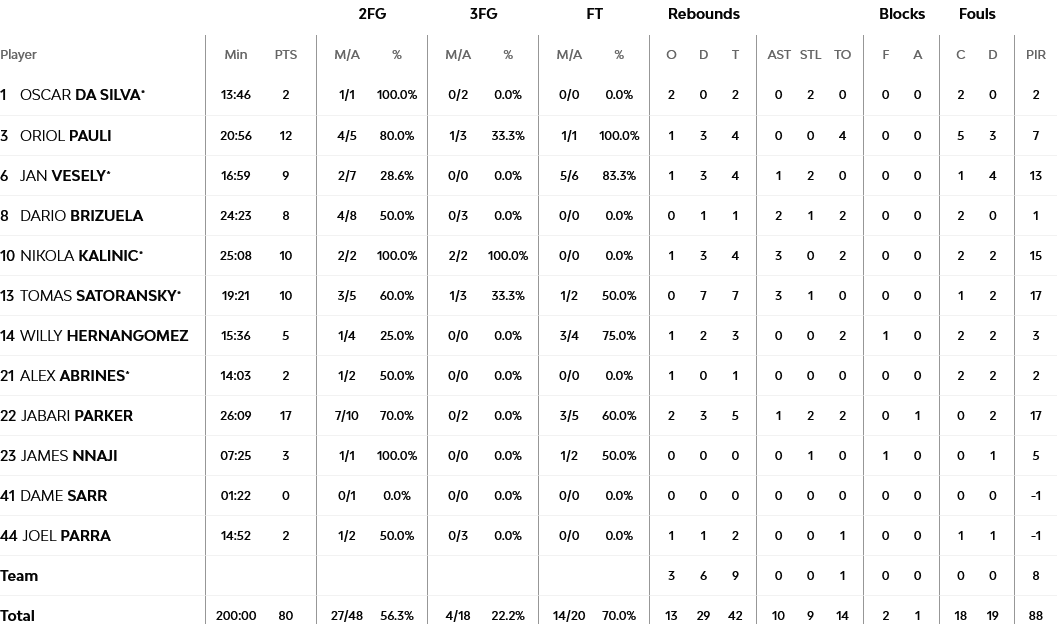 Ξεχώρισαν: 12 πόντους πρόσθεσε ο Πάουλι και από 10 οι Κάλινιτς και Σατοράνσκι, ενώ για τον Παναθηναϊκό, 15 πόντους είχε ο Γκραντ, 12 ο Μπαλτσερόφσκι και 11 ο Γκριγκόνις.