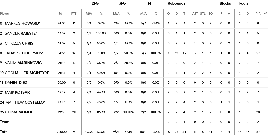 Ξεχώρισαν: 22 πόντους πέτυχε ο Άλεκ Πίτερς, ενώ από Μπασκόνια, ο Μονέκε είχε 20 πόντους.