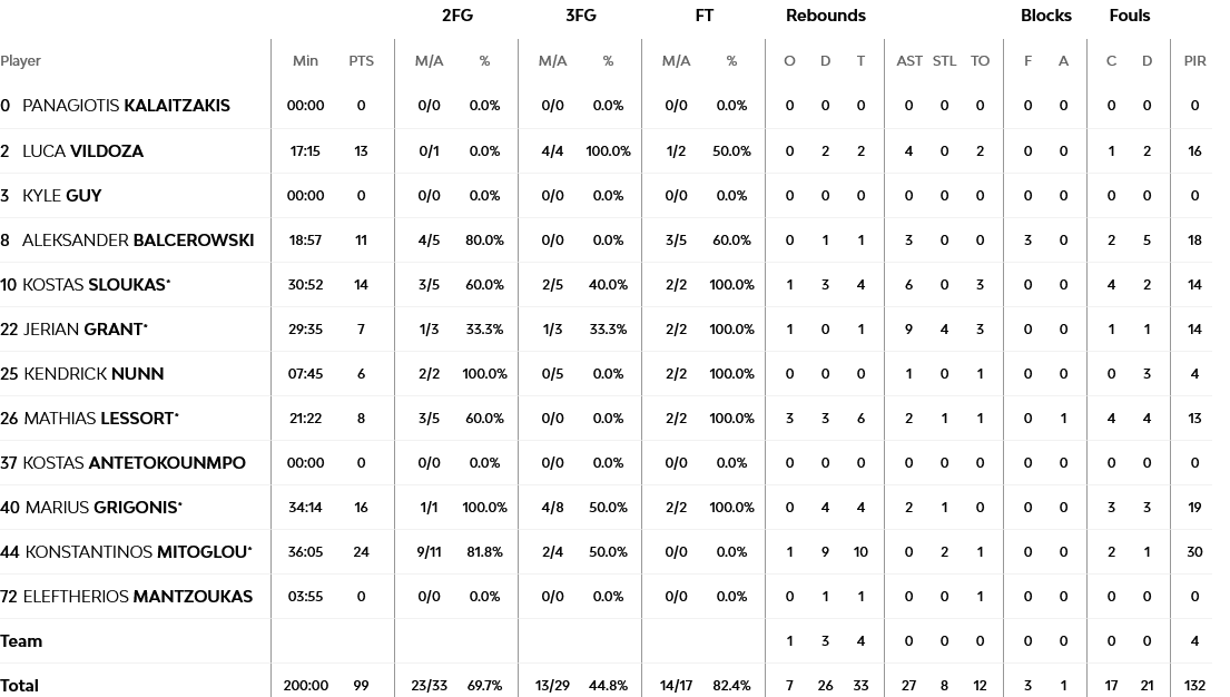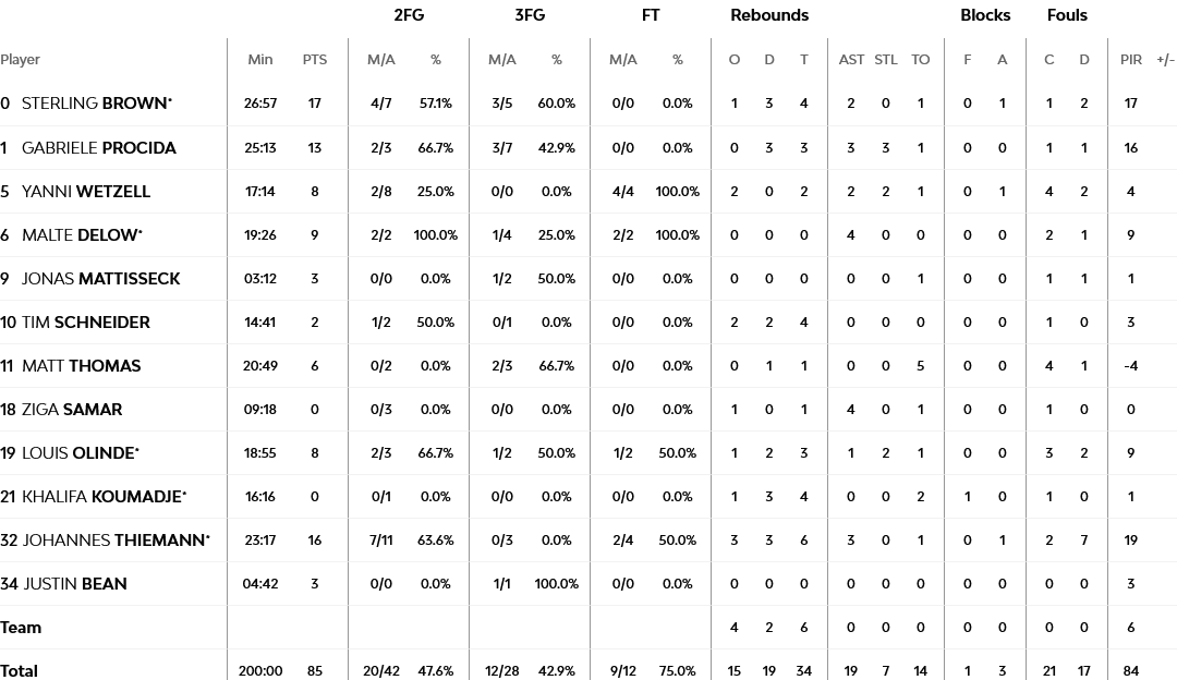 Ξεχώρισαν: 16 πόντους πέτυχε ο Γκριγκόνις και 14 ο Σλούκας, ενώ για την Άλμπα, ο Μπράουν είχε 17 πόντους και ο Προσίντα 16.