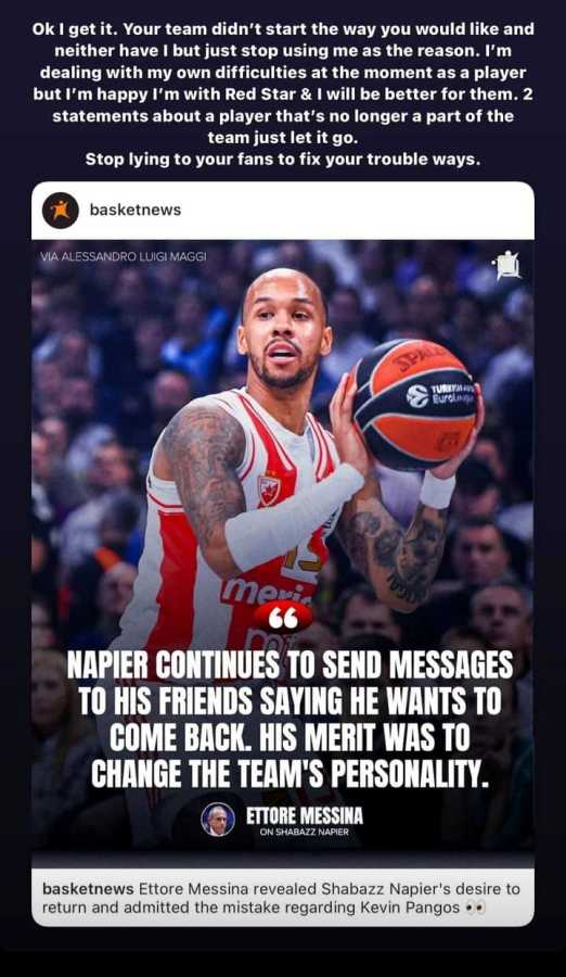 Άμεση ήταν η αάντηση του Σαμπάζ Νέιπιερ στις δηλώσεις του Έτορε Μεσίνα, στις οποίες, μεταξύ άλλων, αναφέρει πως ο πρώην παίκτης της Αρμάνι έχει εκφράσει την επιθυμία του να επιστρέψει, μέσω μηνυμάτων που έχει στείλει σε φίλους του.