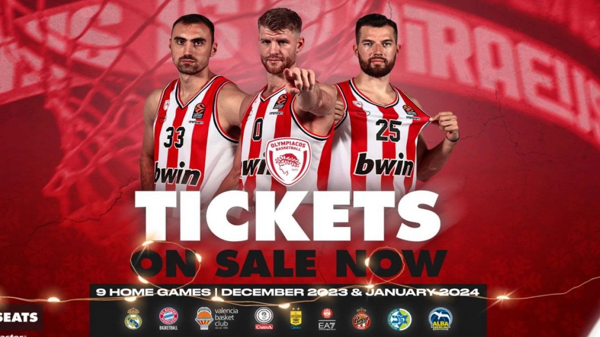 Επτά ευρωπαϊκά εντός έδρας παιχνίδια καλείται να δώσει ο Ολυμπιακός τους μήνες Δεκέμβριο και Ιανουάριο, με τα εισιτήρια των αγώνων να βρίσκονται ήδη στην διάθεση του κόσμου.