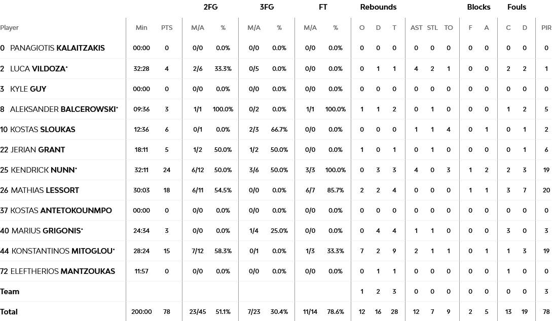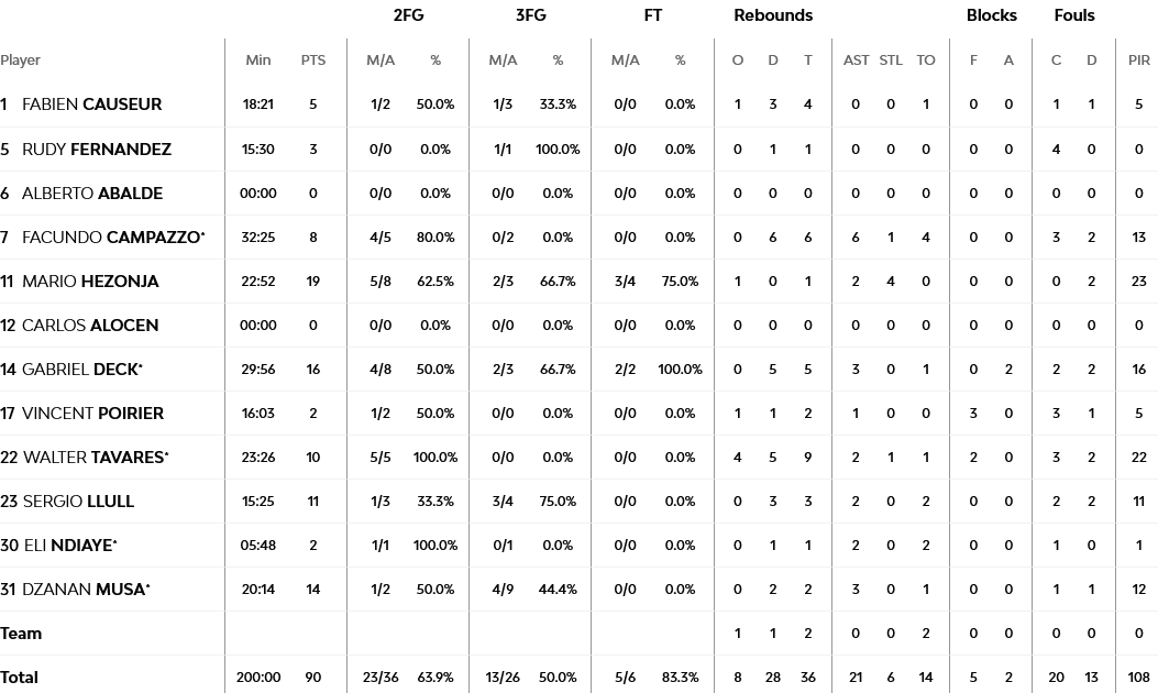 Ξεχώρισαν: 18 πόντοι ήταν ο απολογισμός του Λεσόρ, ενώ 15 πόντους και εννέα ριμπάουντ είχε ο Ντίνος Μήτογλου. Για την Ρεάλ, ο Χεζόνια είχε 19 πόντους, ο Ντεκ 16 και ο Μούσα 14 πόντους.