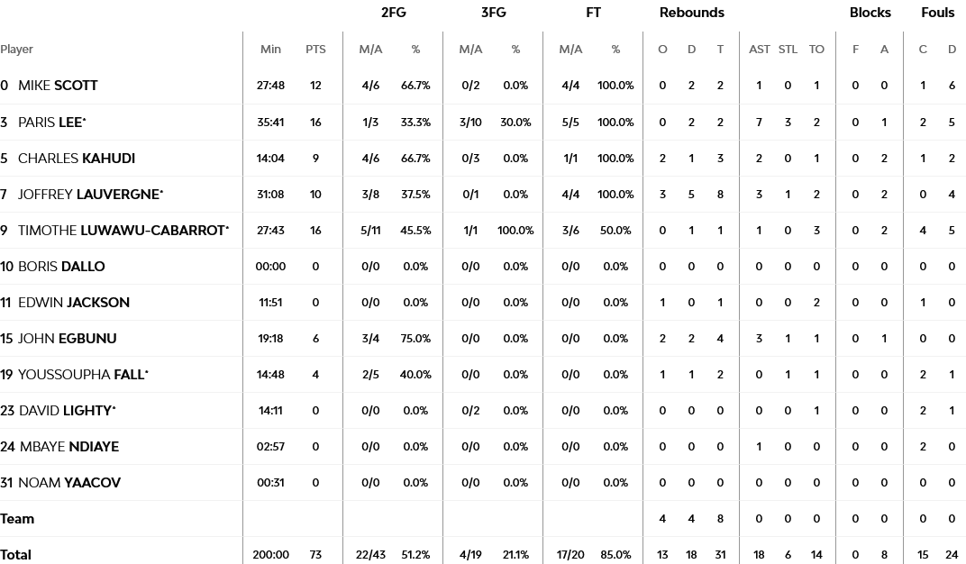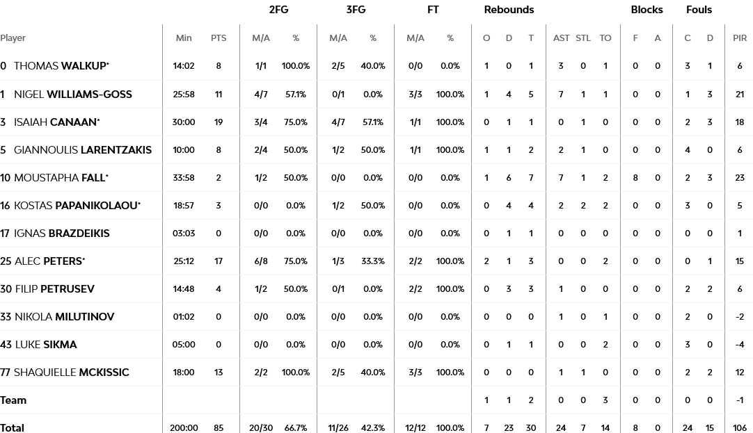 Ξεχώρισαν: 17 πόντους είχε ο Πίτερς, 13 ο ΜακΚίσικ, ενώ ο Φαλ έμεινε στους δύο πόντους, όμως είχε από επτά ριμπάουντ και ασίστ, αλλά και οκτώ τάπες.