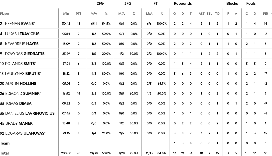 Για την Ζαλγκίρις, 18 πόντους είχε ο Έβανς και 14 ο Σάμνερς.