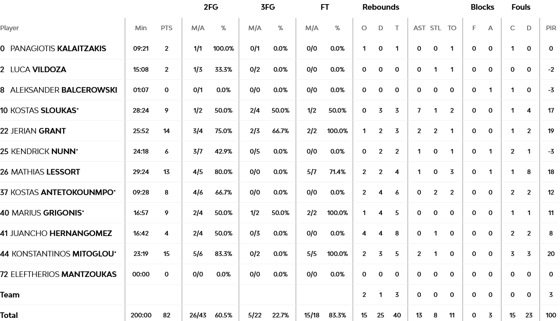 Τα δεκάλεπτα: 20-17, 38-31, 61-50, 82-65